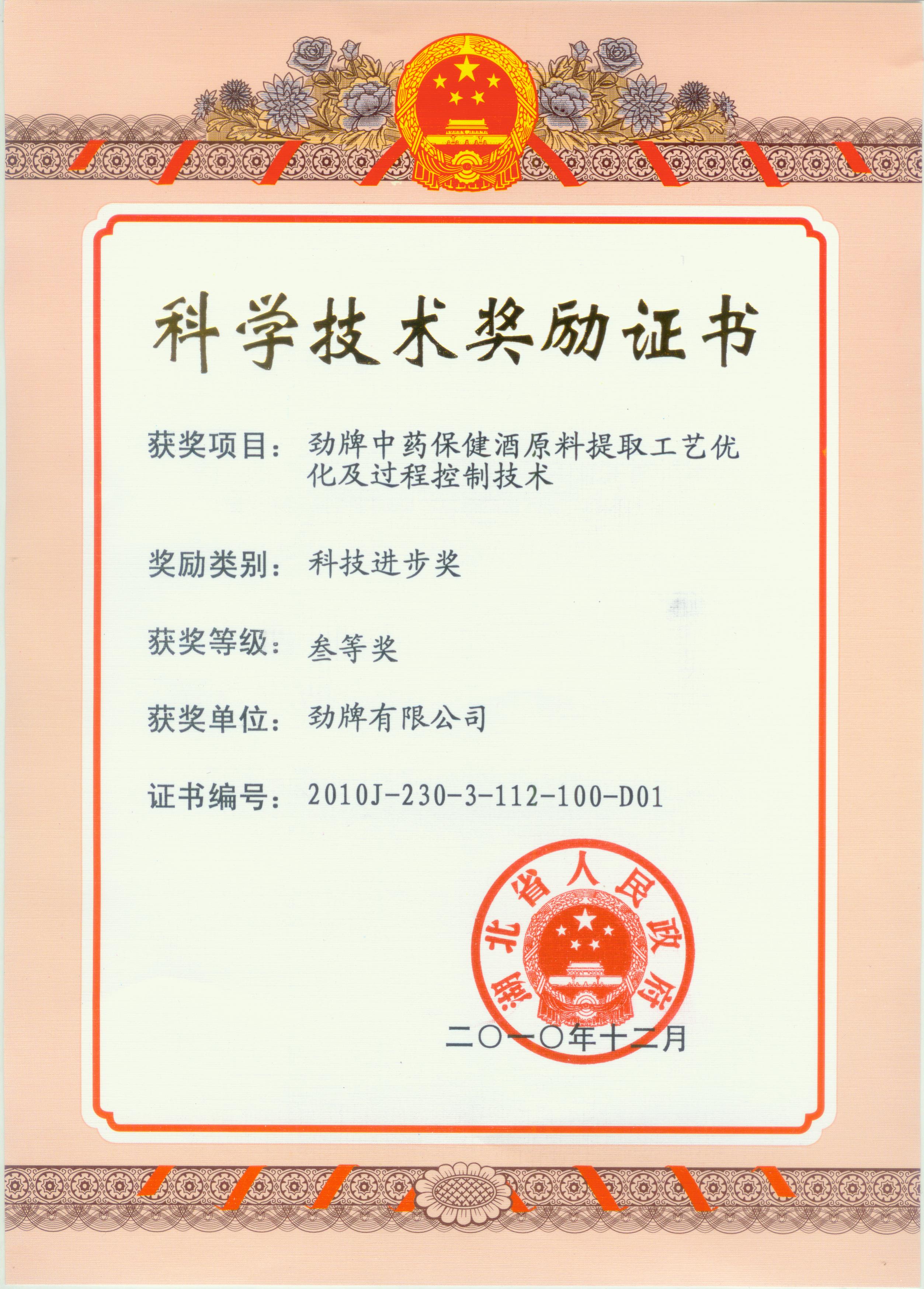 勁牌中藥保健酒原料提取工藝優(yōu)化及過程控制技術(shù)
