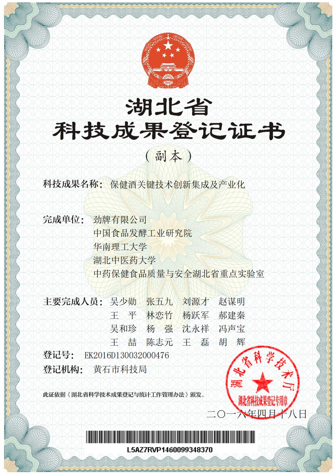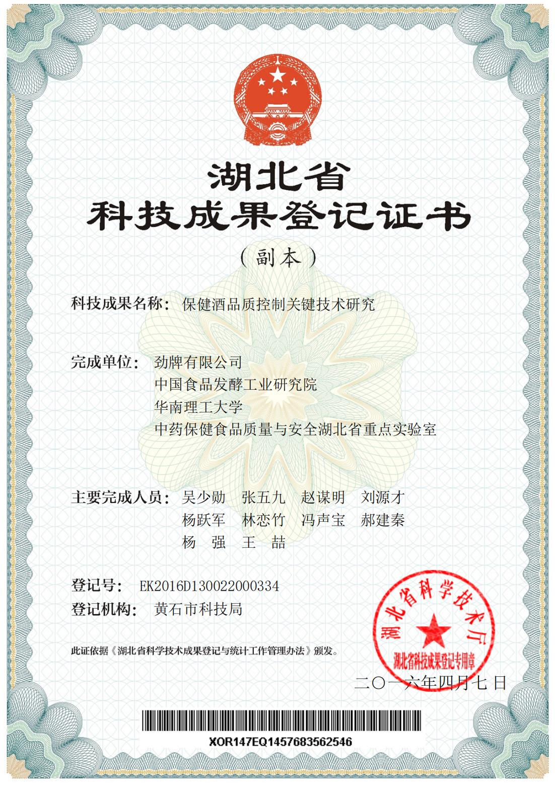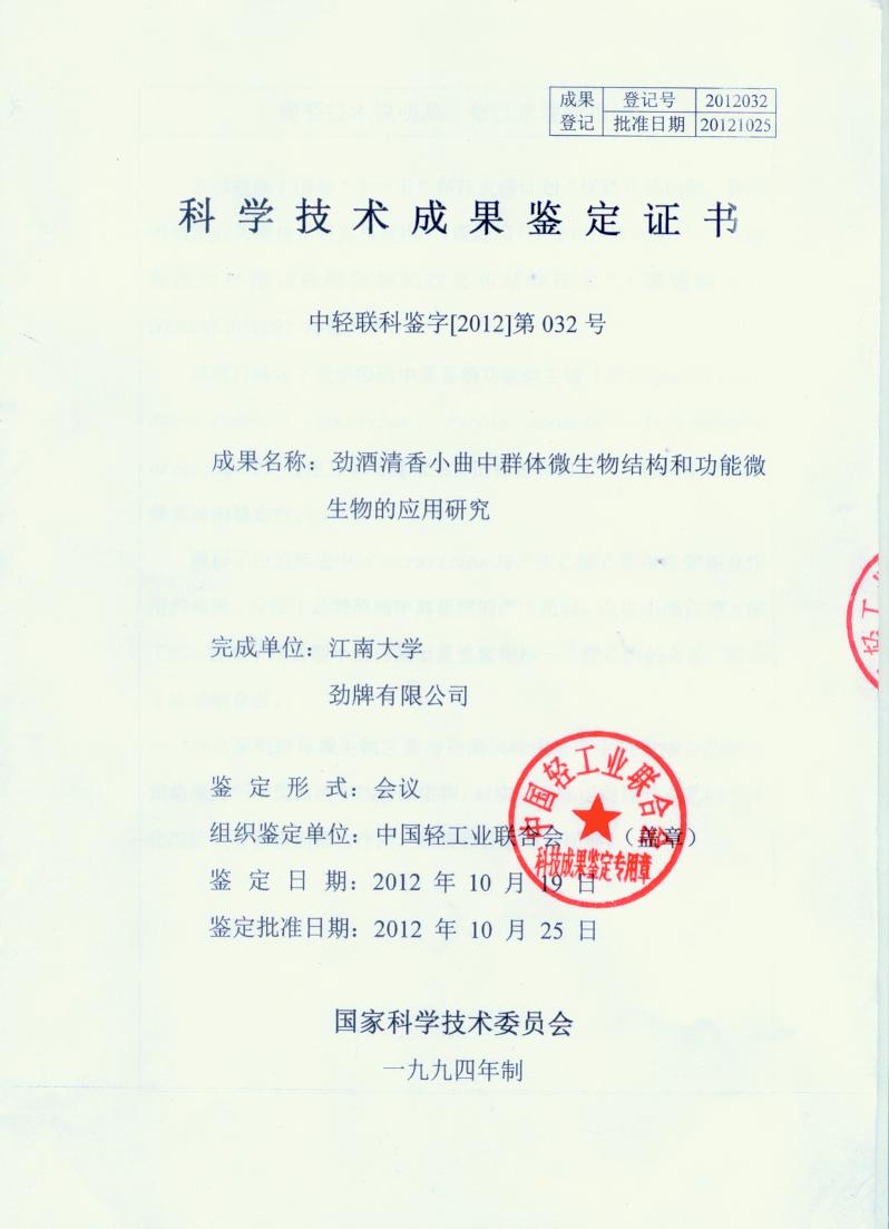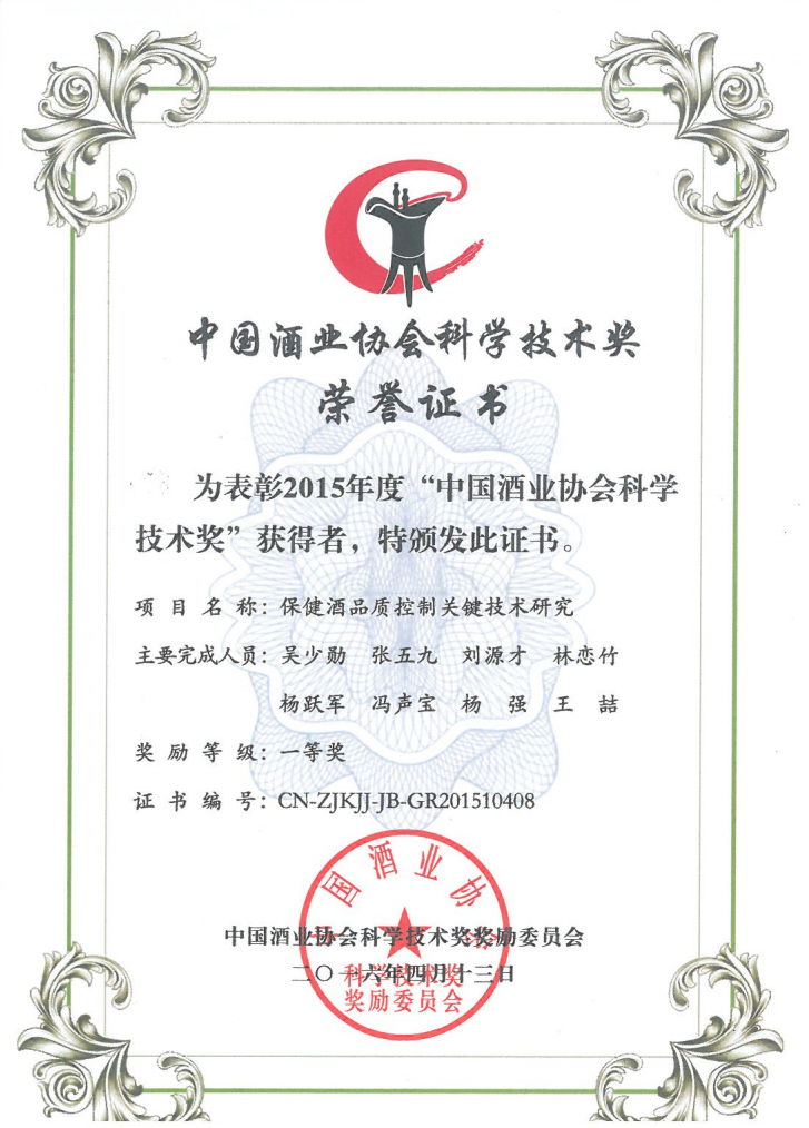 近年來,公司圍繞保健酒、草本白酒和中草藥新產(chǎn)品研發(fā)、產(chǎn)品改進和基礎應用技術(shù),在中藥數(shù)字化提取、小曲酒釀造新工藝、中藥指紋圖譜等核心技術(shù)方面擁有自主知識產(chǎn)權(quán),通過行業(yè)協(xié)會等鑒定機構(gòu)技術(shù)評估22項,其中15項成果鑒定為“國際領(lǐng)先”水平,7項成果鑒定為“國際先進”水平。