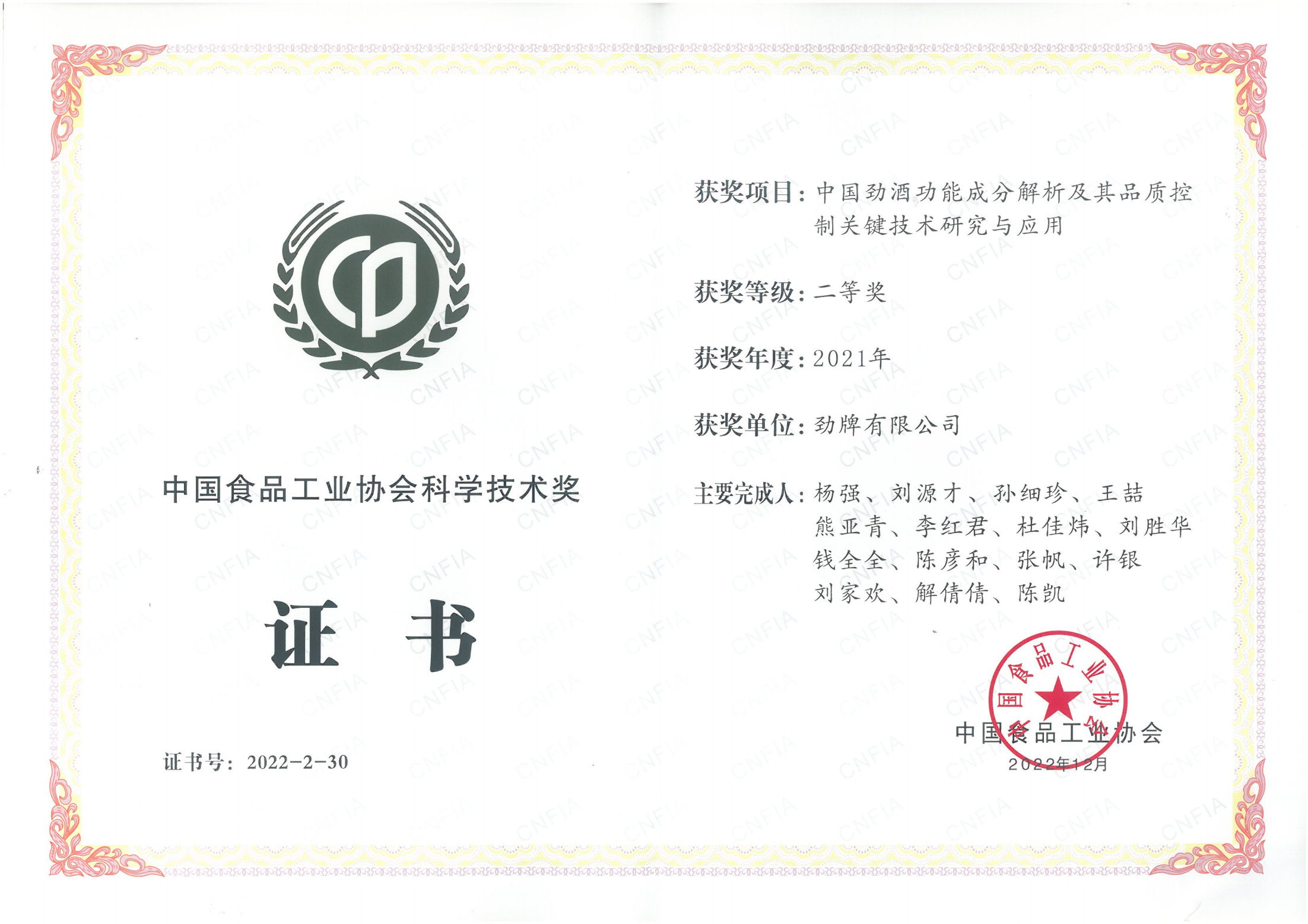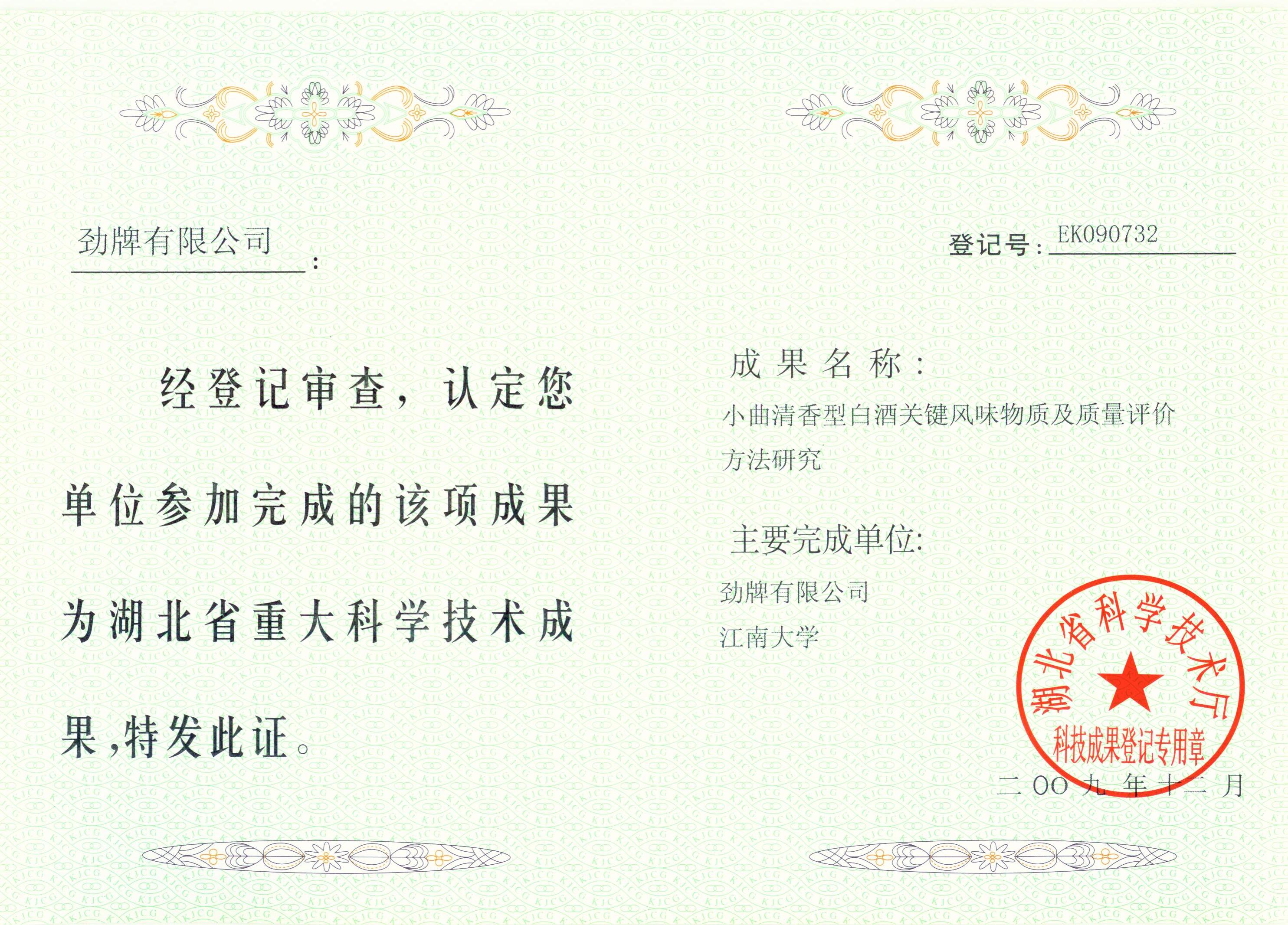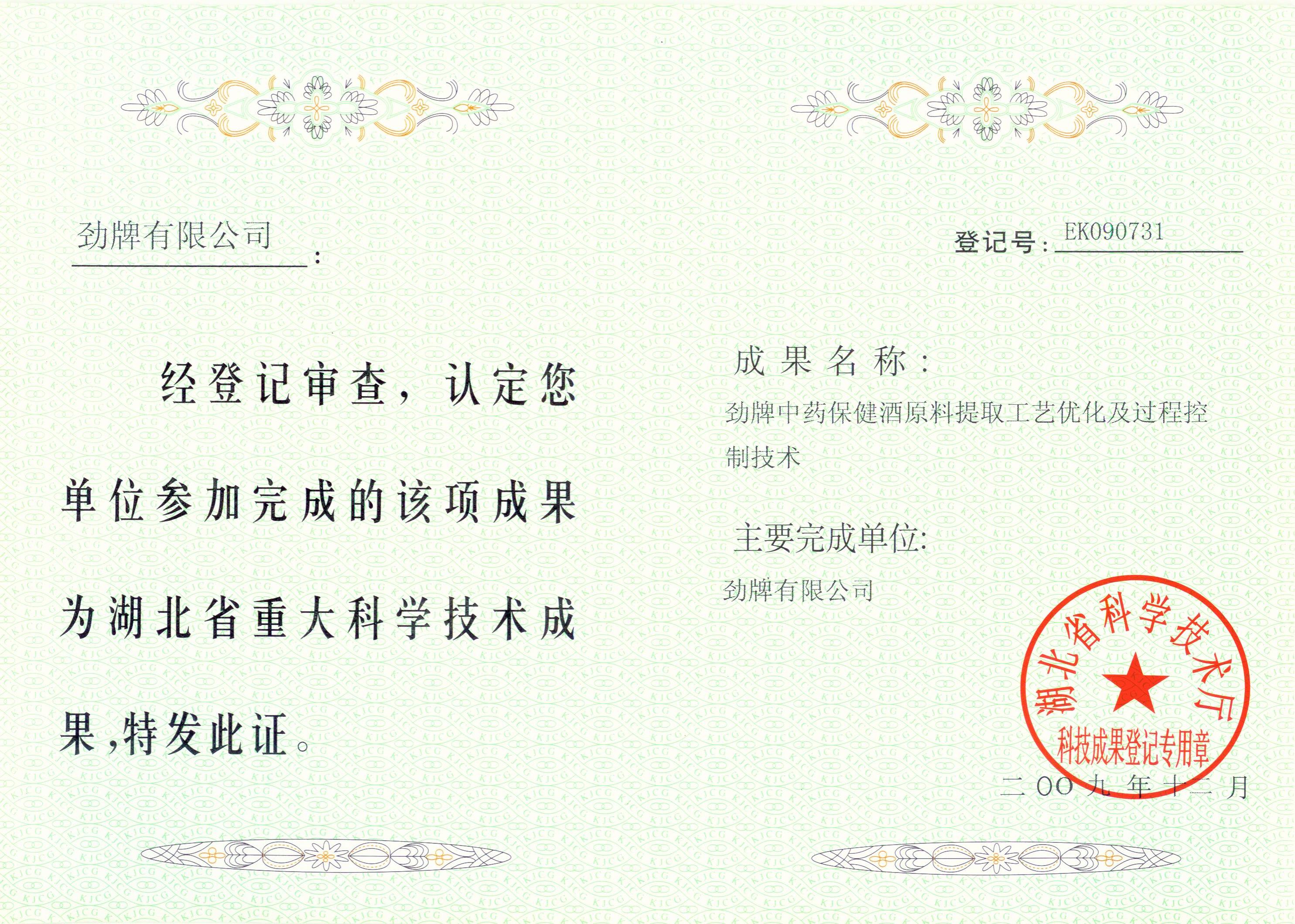 近年來,公司圍繞保健酒、草本白酒和中草藥新產(chǎn)品研發(fā)、產(chǎn)品改進和基礎應用技術(shù),在中藥數(shù)字化提取、小曲酒釀造新工藝、中藥指紋圖譜等核心技術(shù)方面擁有自主知識產(chǎn)權(quán),通過行業(yè)協(xié)會等鑒定機構(gòu)技術(shù)評估22項,其中15項成果鑒定為“國際領(lǐng)先”水平,7項成果鑒定為“國際先進”水平。